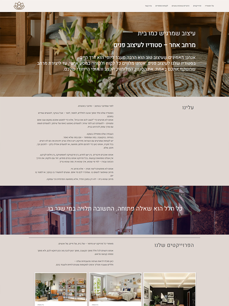 דף נחיתה לסטודיו לעיצוב פנים